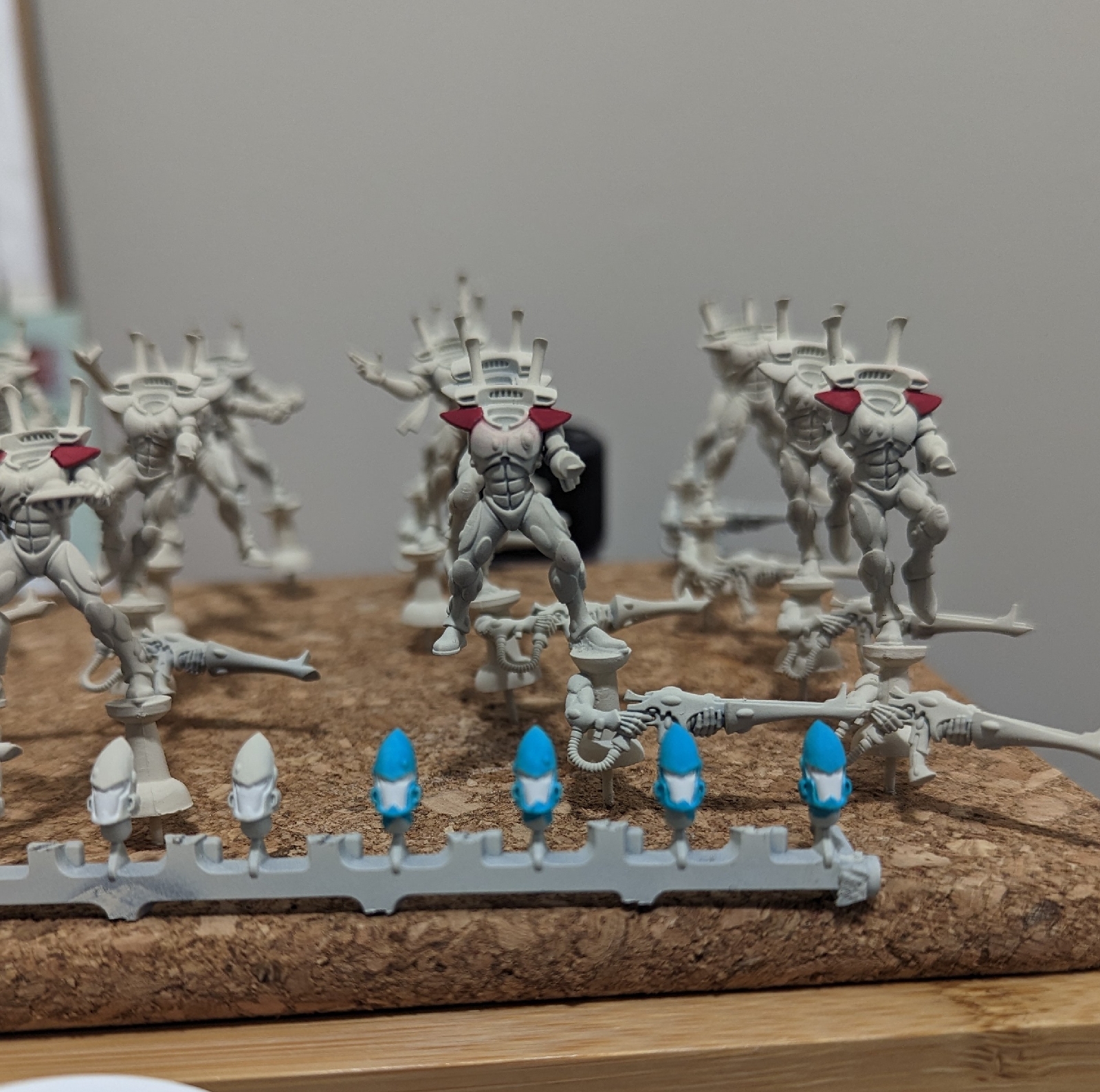 I did this model in sub-assemblies. Mostly because the arms would be a pain to work around. Primed with an airbrush in grey and then sprayed with white from above.